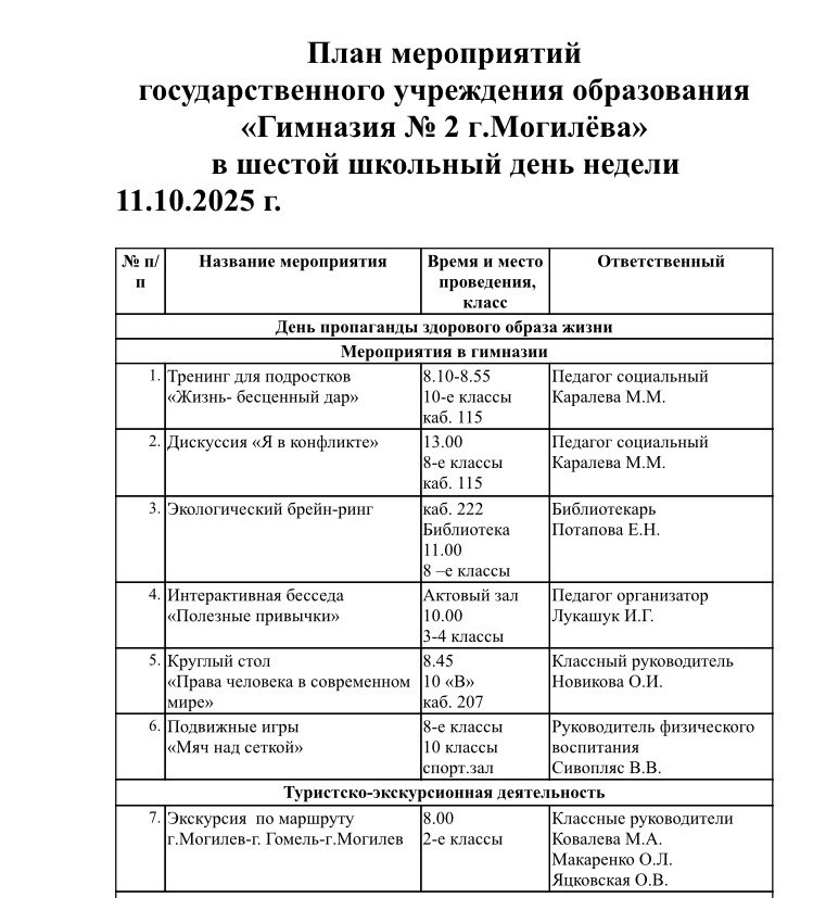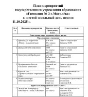 ГУО "Гимназия №2 г.Могилёв" - Официальный сайт » Главная » План мероприятий в шестой школьный день 11.10.2025г.