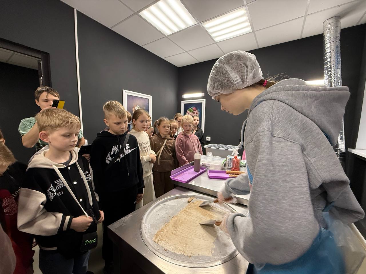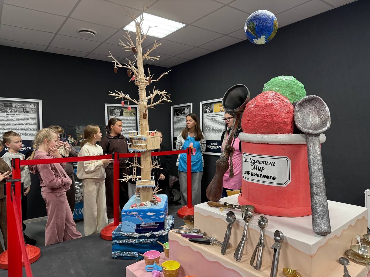 А после этого четвероклассников ждало настоящее сладкое погружение — экскурсия в «Музей мороженого». Здесь история любимого лакомства ожила! Ребята увидели, как менялись рецепты и технологии приготовления мороженого на протяжении веков, и даже узнали несколько секретов его производства. Завершилось всё, разумеется, самым приятным — дегустацией!