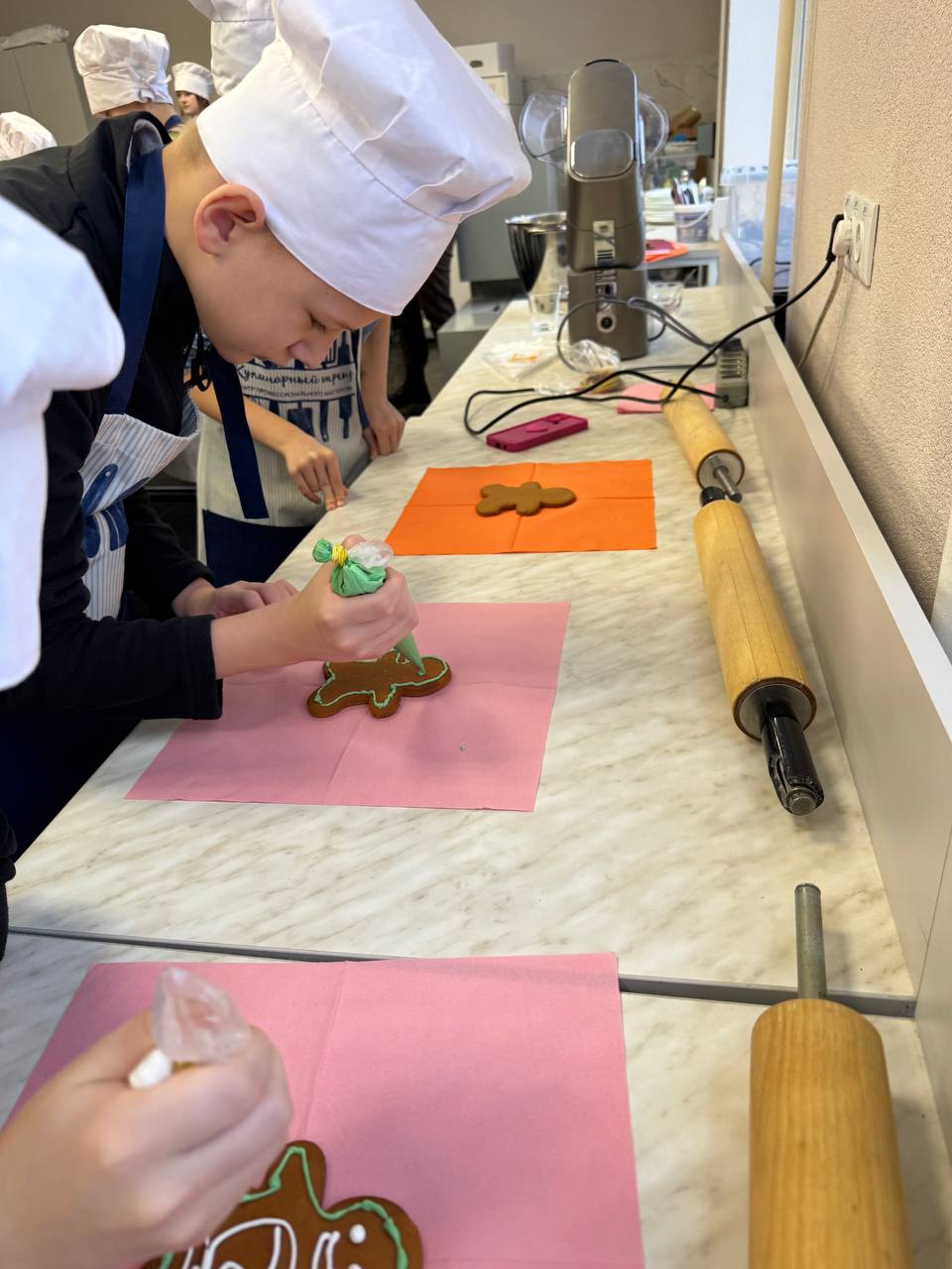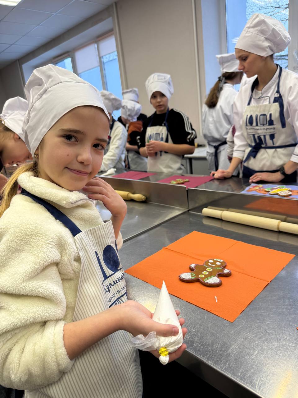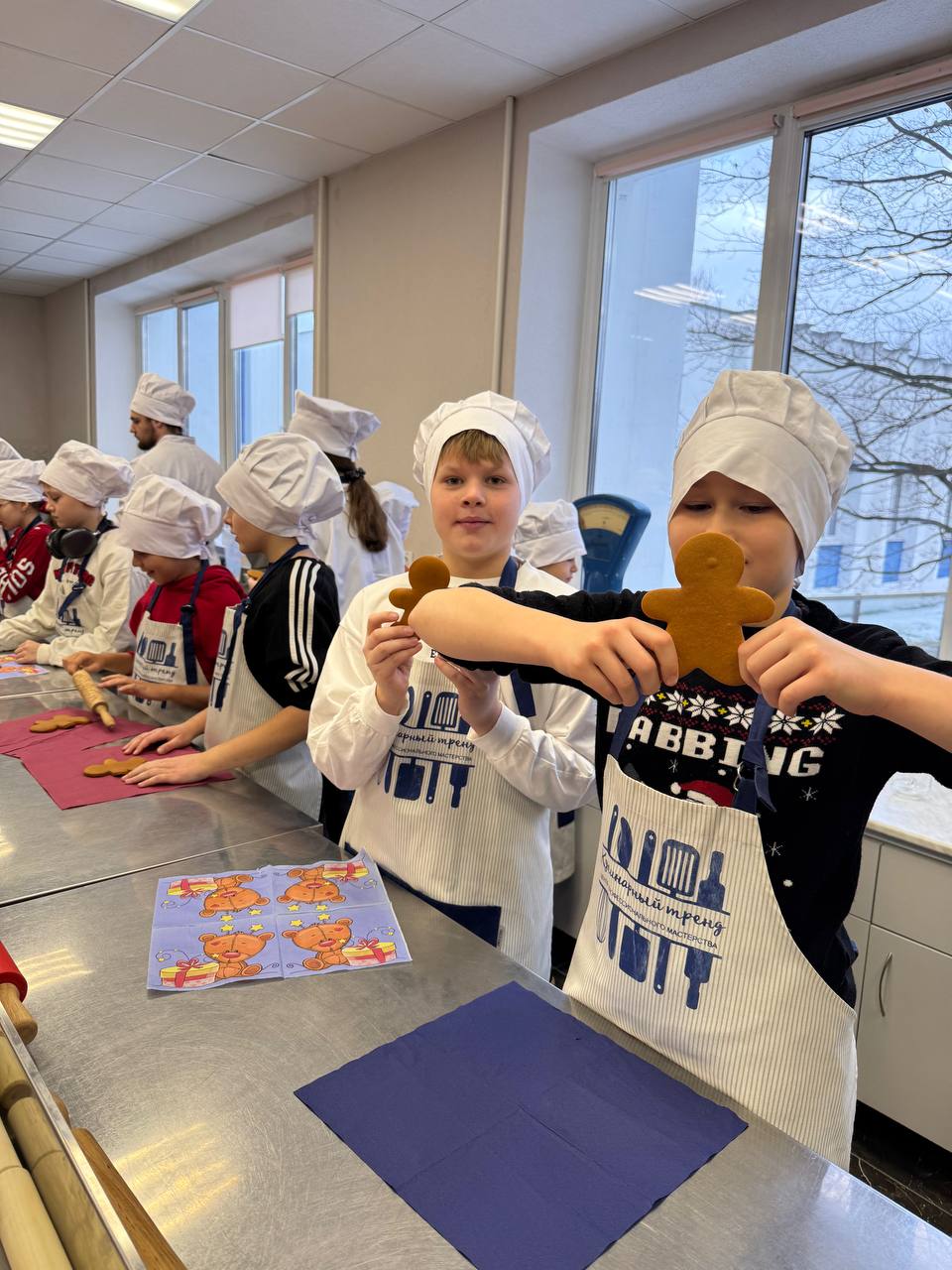 В преддверии новогодних праздников, ученики 5 «Г» класса с энтузиазмом приняли участие в мастер-классе по изготовлению имбирных пряников! На фото веселые моменты: смешивание ингредиентов, вырезка фигурок и яркое украшение. Мастер-класс развил кулинарные навыки и командный дух детей. Итог — вкусные пряники, которые дети гордо унесли домой!
