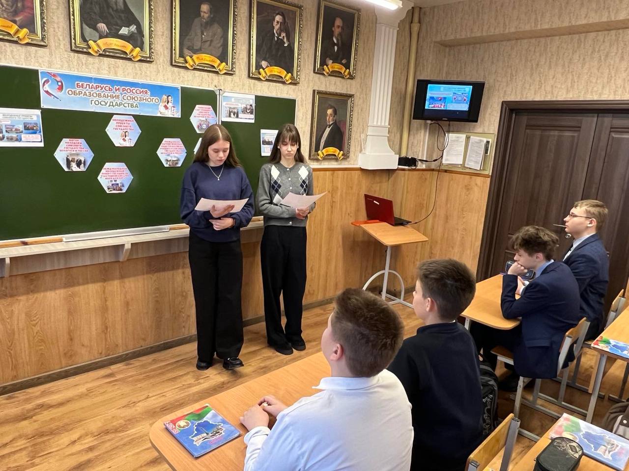 В рамках программы «Я. Моя семья. Моя Родина» у учащихся 8 «Г» класса прошло тематическое занятие «Беларусь и Россия образование союзного государства». Учащиеся познакомились с историей становления и возможными перспективами развития Союзного государства.