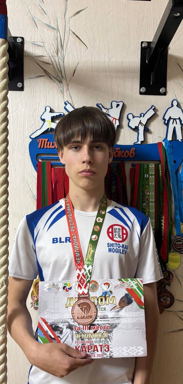 Поздравляем учащегося 10 «А» класса Бобкова Тимофея с блестящим достижением! Он занял 3 место на Чемпионате Республики Беларусь по каратэ. Взойти на пьедестал национального первенства — результат огромного труда, дисциплины и силы духа. Желаем Тимофею новых побед, ярких боёв и покорения самых высоких вершин!