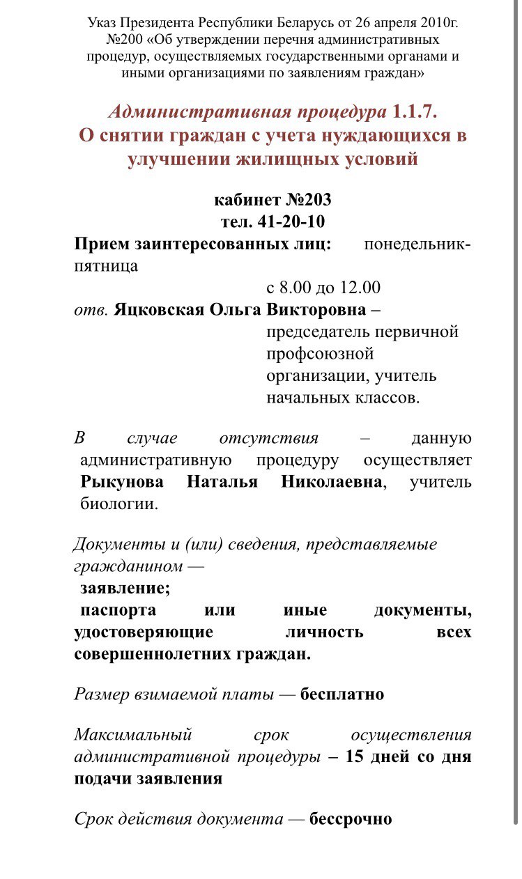ПЕРЕЧЕНЬ АДМИНИСТРАТИВНЫХ ПРОЦЕДУР,ОСУЩЕСТВЛЯЕМЫХ ГУО «Гимназия №2 г.Могилева»