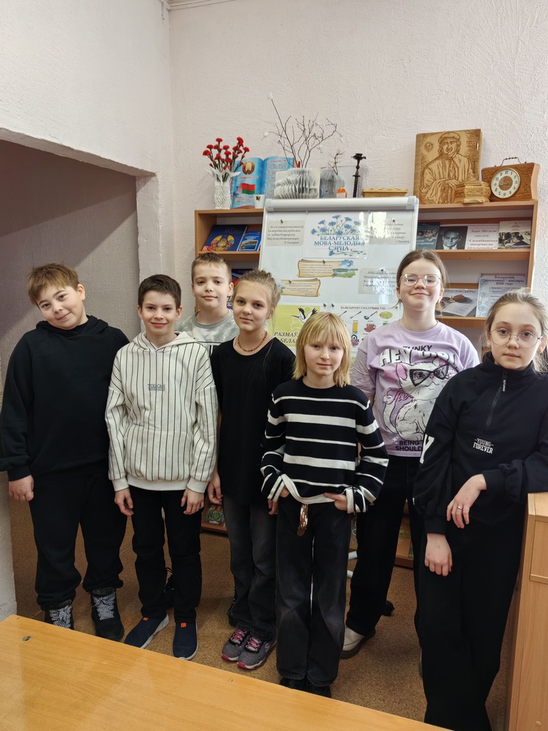 Менавіта ў гэты дзень вучні 5-х класаў прынялі ўдзел у літаратурным спаборніцтве “Знаўцы літаратуры”, якое падрыхтавалі супрацоўнікі бібліятэкі. Пачалось мерапрыемства з аўкцыёна, на якім дзеці па чарзе называлі прозвішчы беларускіх пісьменнікаў, казачнікаў, паэтаў. Далей вучні спрабавалі свае веды ў перакладзе слоў з рускай на беларускую мову, разгадвалі крыжаванкі.