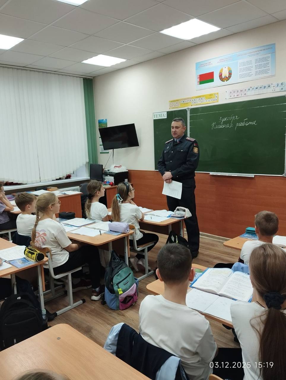 Сегодня в нашей гимназии состоялась важная встреча. Инспектор по делам несовершеннолетних В. М. Колеснев провел с учащимися профилактические беседы о безопасном поведении.