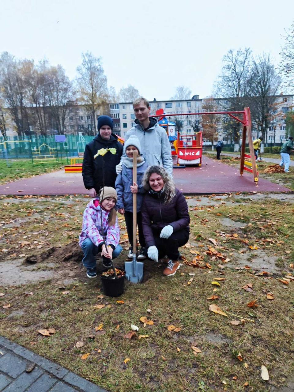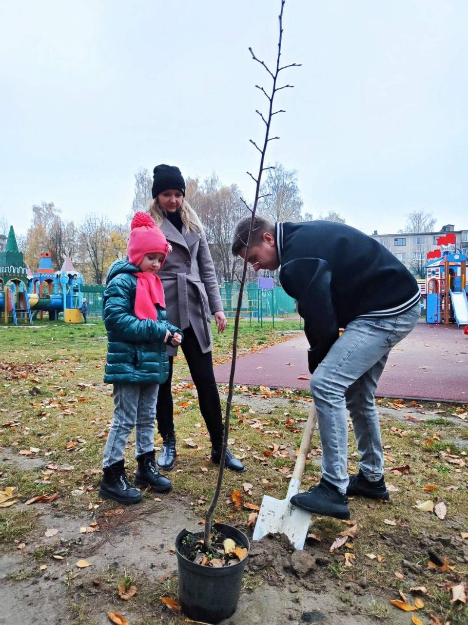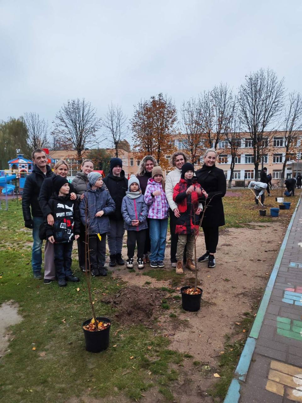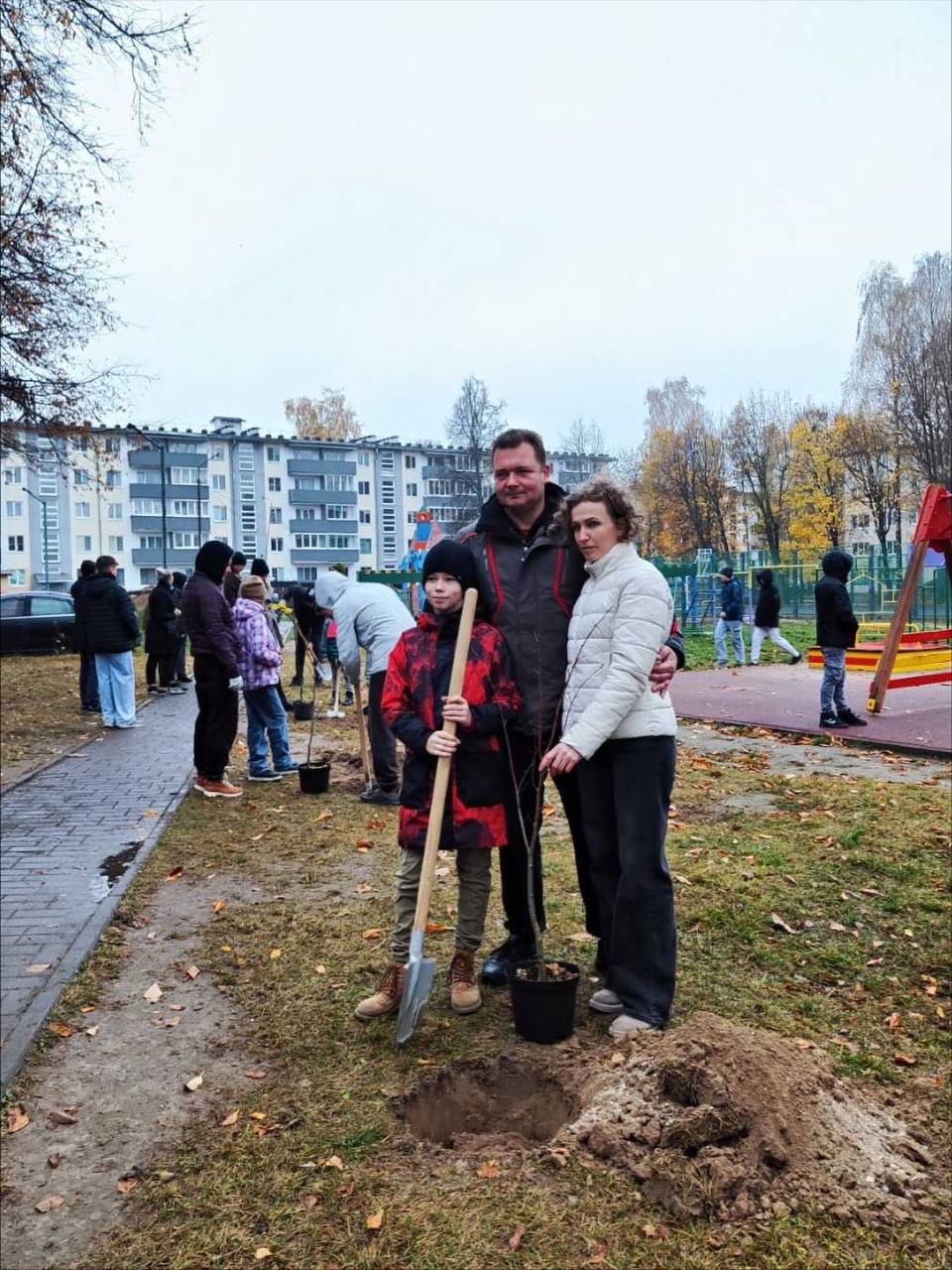 Работа кипела: родители копали, дети помогали держать саженцы. И теперь на территории игровой плащадки красуется стройный ряд молодых лип.