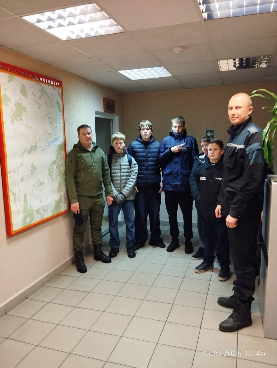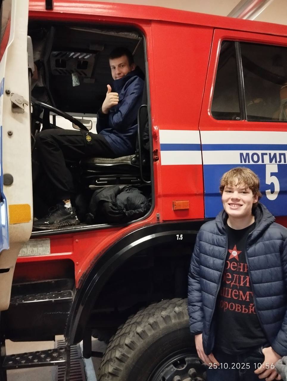 После посадки деревьев для ребят была организована экскурсия по пожарной аварийно-спасательной части. Им рассказали об общих принципах работы службы: от приёма сообщения о происшествии до выезда и классификации подразделений.