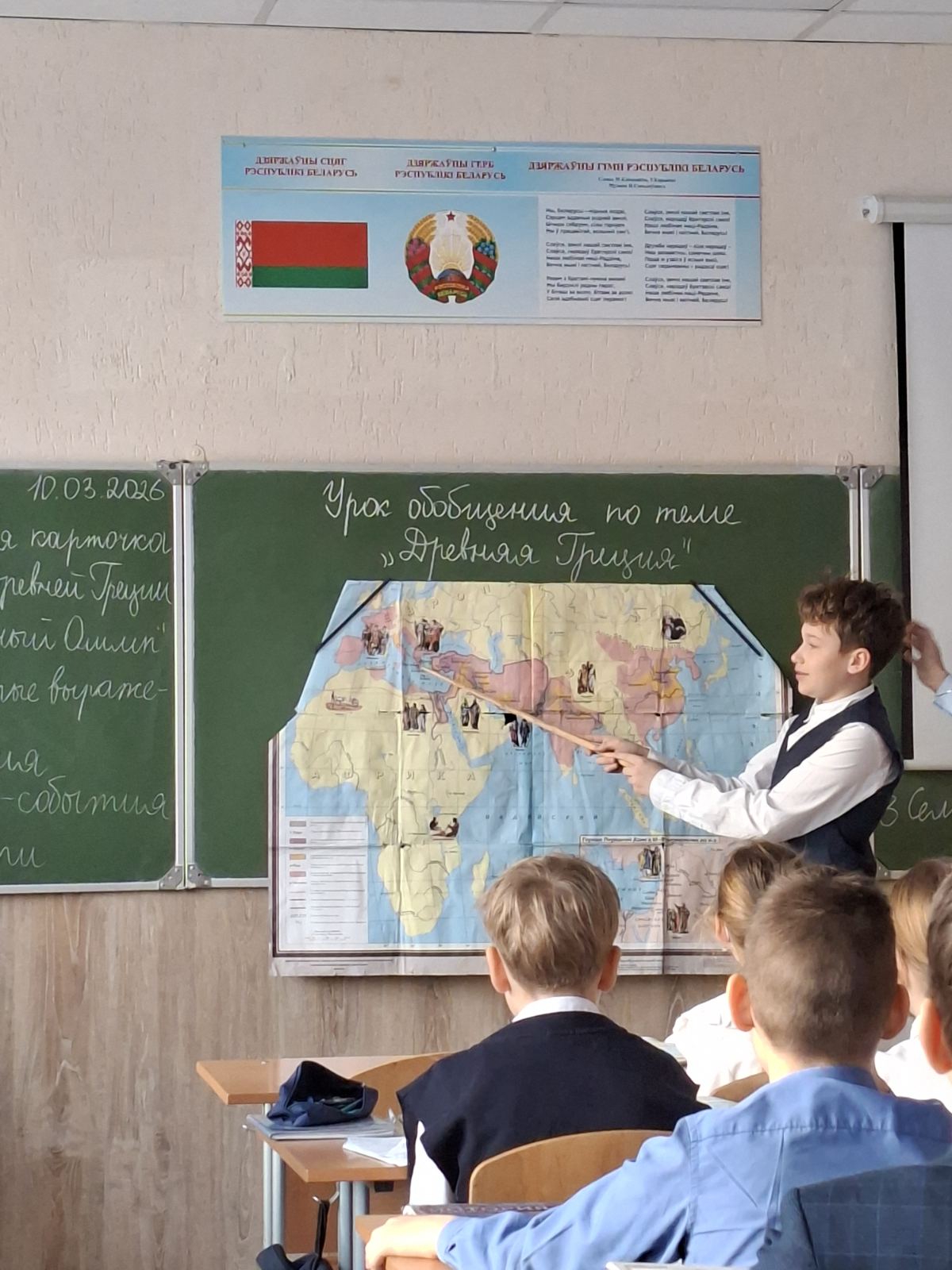 Открытый урок по теме “Древняя Греция” в 5 классе Сегодня в рамках предметной недели истории прошёл открытый урок по теме «Древняя Греция». Пятиклассники работали с карточками, ИКТ, выполняли задания «найди соответствие» и проводили взаимопроверку. Урок помог ребятам обобщить и систематизировать знания — и сделал путешествие в античность ярким и увлекательным.