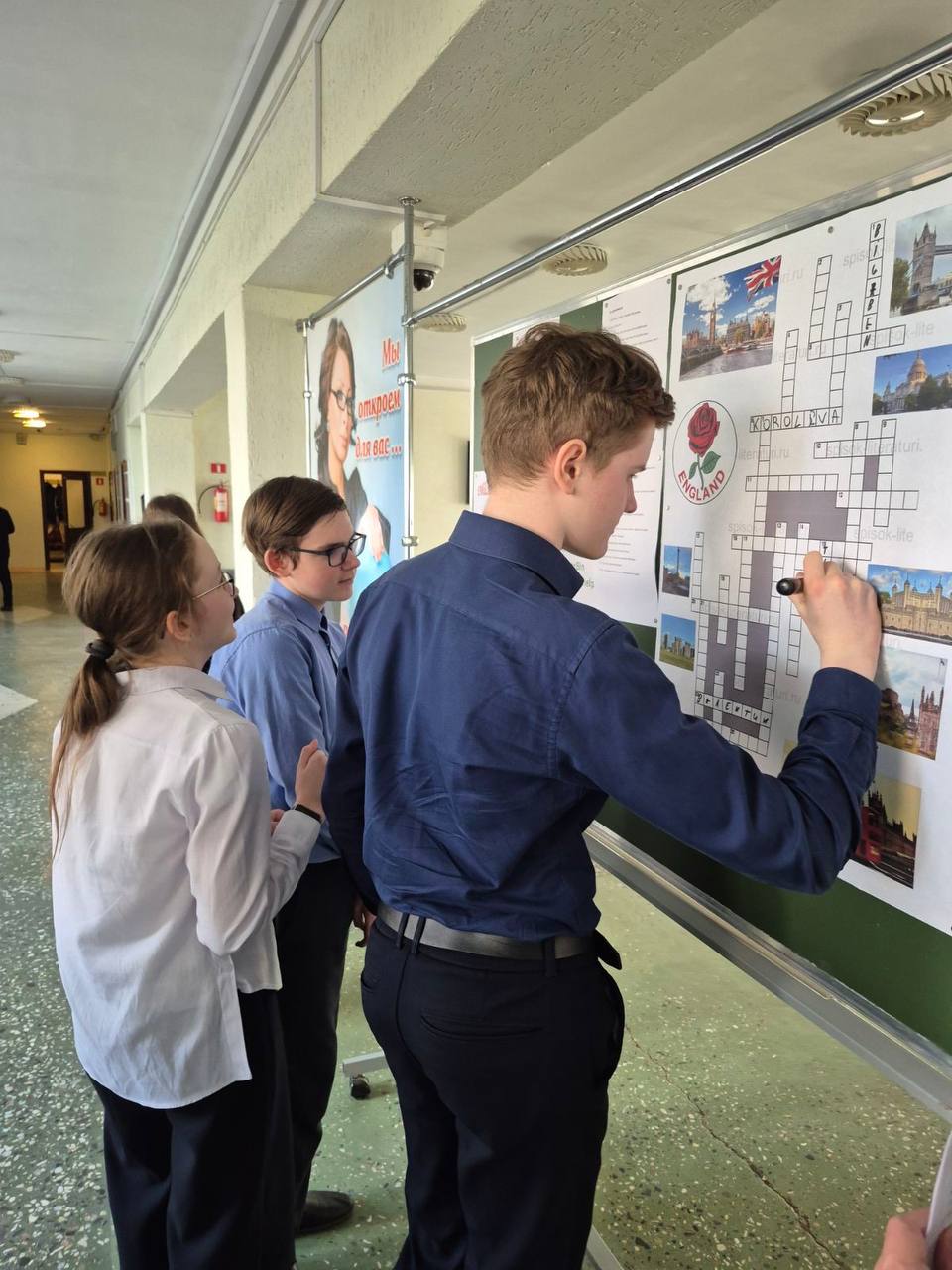 В рамках Недели английского языка наши учащиеся провели перемену с пользой, решая кроссворд в фойе гимназии. Ребята вспоминали слова, помогали друг другу и отлично провели время!