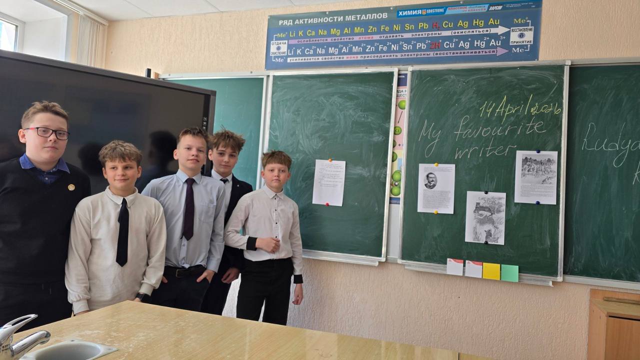 Сегодня в 6 «В» классе прошёл открытый урок по теме «Мой любимый писатель». Ребята познакомились с биографией известного писателя, автора «Книга джунглей» Редьярда Киплинга, в увлекательной форме повторили грамматику - порядок слов в вопросительном предложении. Урок пролетел незаметно!