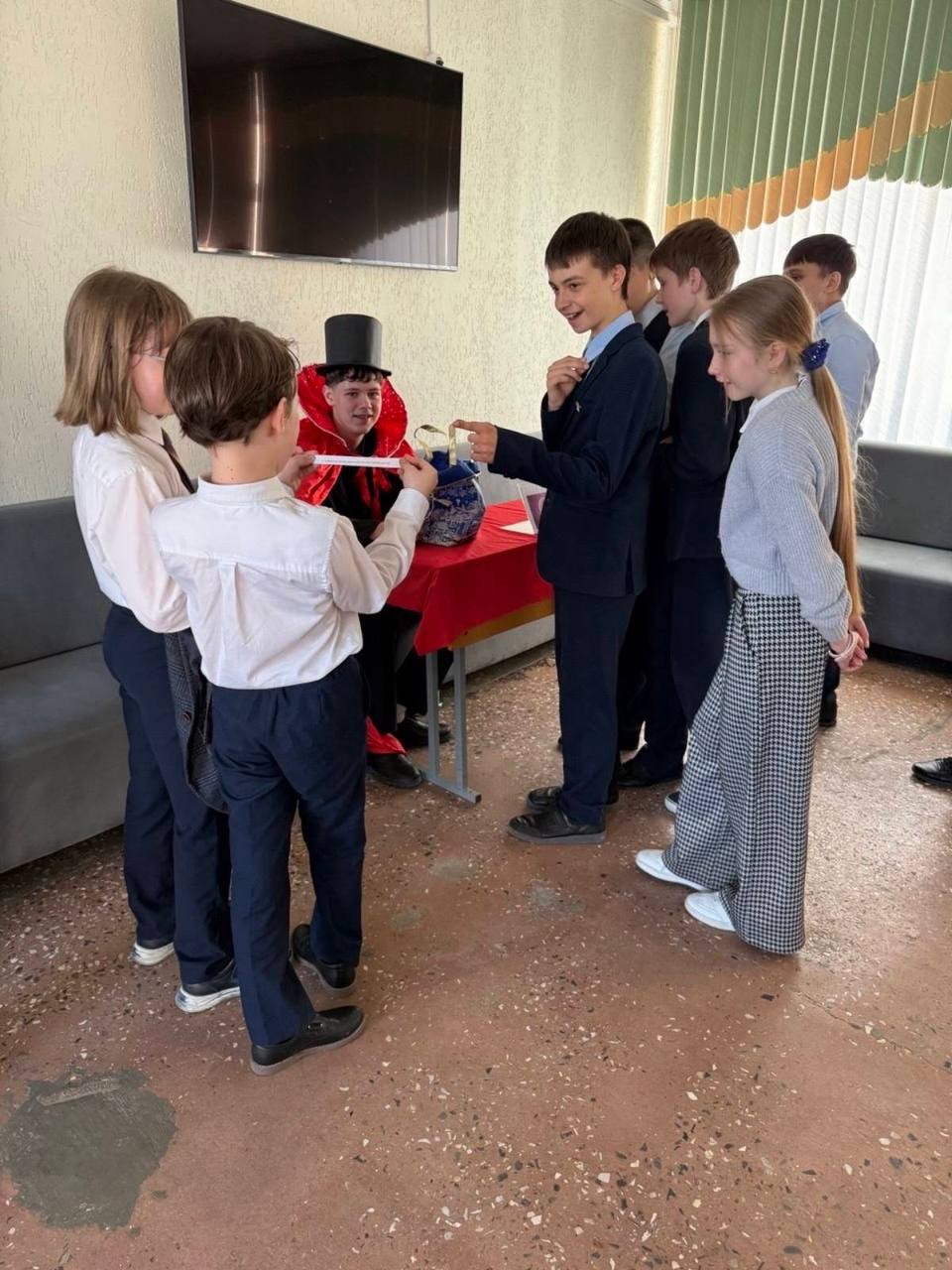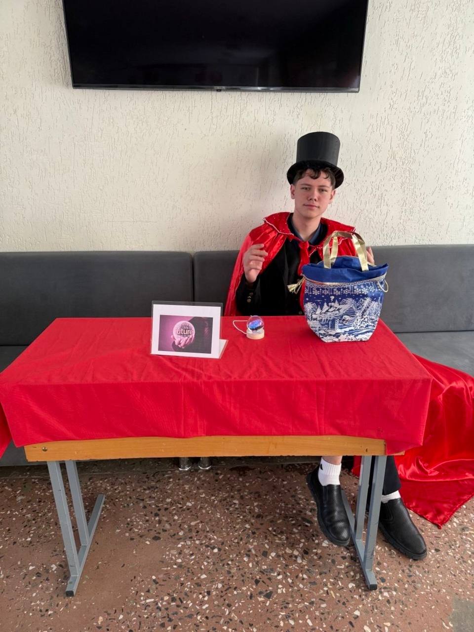 Сегодня в фойе гимназии была организована необычная интерактивная зона — «English Oracle» (Английский оракул). Вместо стандартных гаданий учащимся предлагалось получить мотивирующие предсказания о будущем в учебе и жизни, но главное условие — на английском языке.