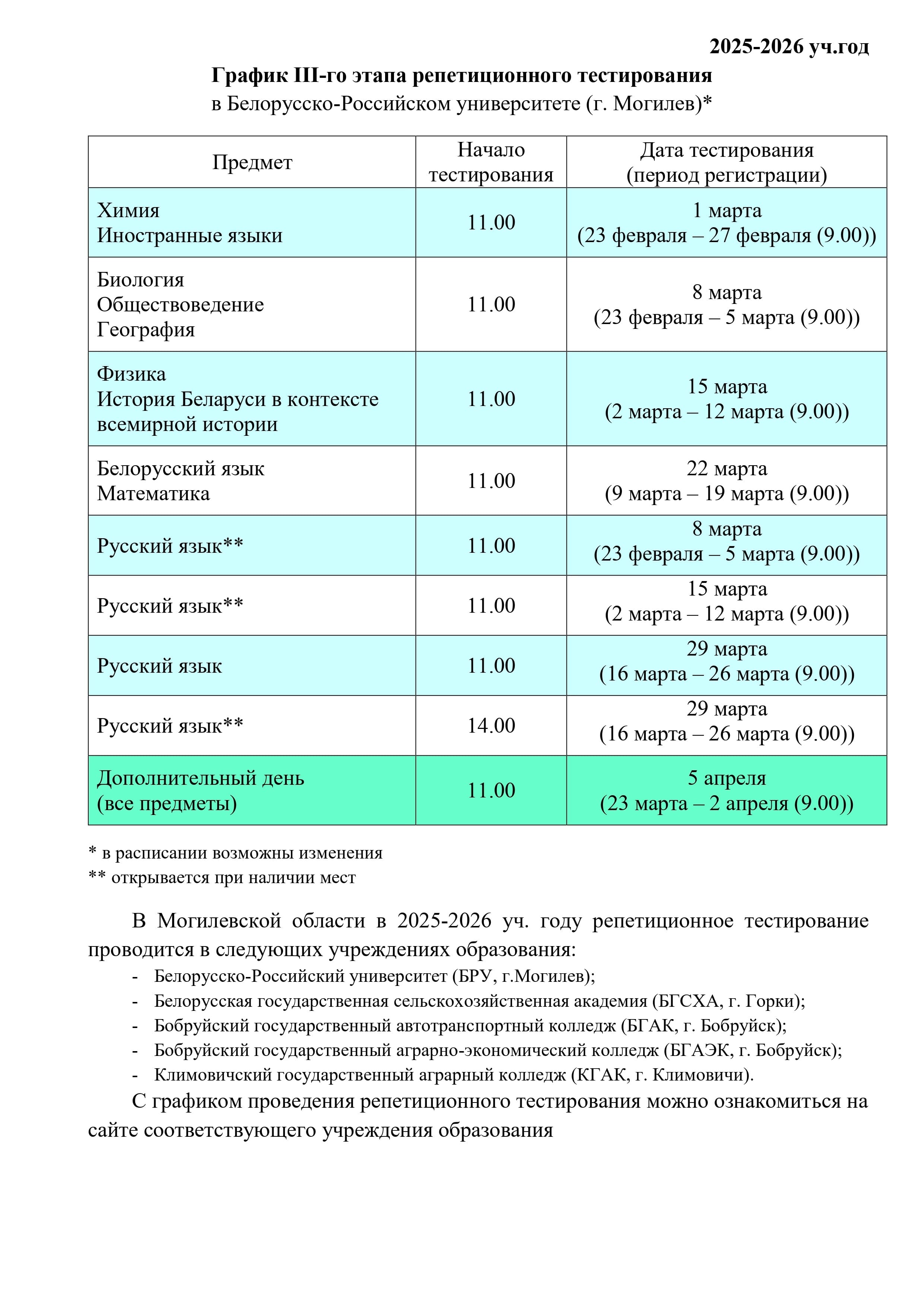 | График ЦТ - 2026 | |
